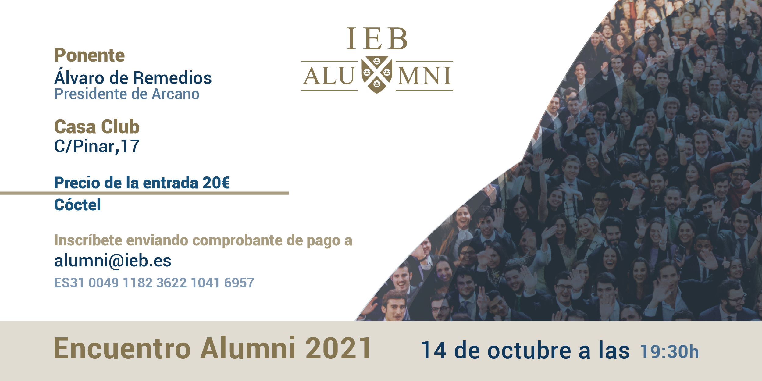 Inscríbete enviando comprobante de pago a alumni@ieb.es